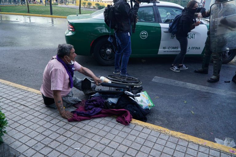 Noticias Carabineros le quitó silla de ruedas a una persona Este hecho protagonizado por Carabineros ocurrió ayer miércoles, en el marco de las manifestaciones cerca del Costanera Center. Por Iván Rimassa | 07 Nov, 2019. 12:58 hrs Una situación difundida en redes sociales fue la que protagonizó un hombre en silla de ruedas, en donde se ve que funcionarios de carabineros le quitaron dicha ayuda técnica. El incidente se registró mientras se desarrollaban las manifestaciones en las cercanías del Costanera Center, en el sector de Tobalaba. Te puede interesar: Formalizarán a 14 Carabineros por torturas. Revisa el momento a continuación: https://www.eldesconcierto.cl/wp-content/uploads/2019/11/discapacitadoagregido.mp4 https://twitter.com/pabloperezyanez/status/1192209257858555904 Actualidad Confirman detalles sobre Animales Fantásticos 3 Negocian llegada de Rage Against The Machine a Chile Sigue a Concierto.cl en Google Discover Recibe nuestros contenidos directamente en tu feed. Seguir en Google Contenido patrocinado
