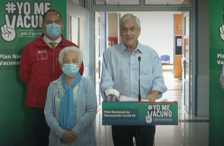 “Ha sido la primera mujer en vacunarse”, confirmó Piñera entre aplausos desde la Región de Los Ríos.