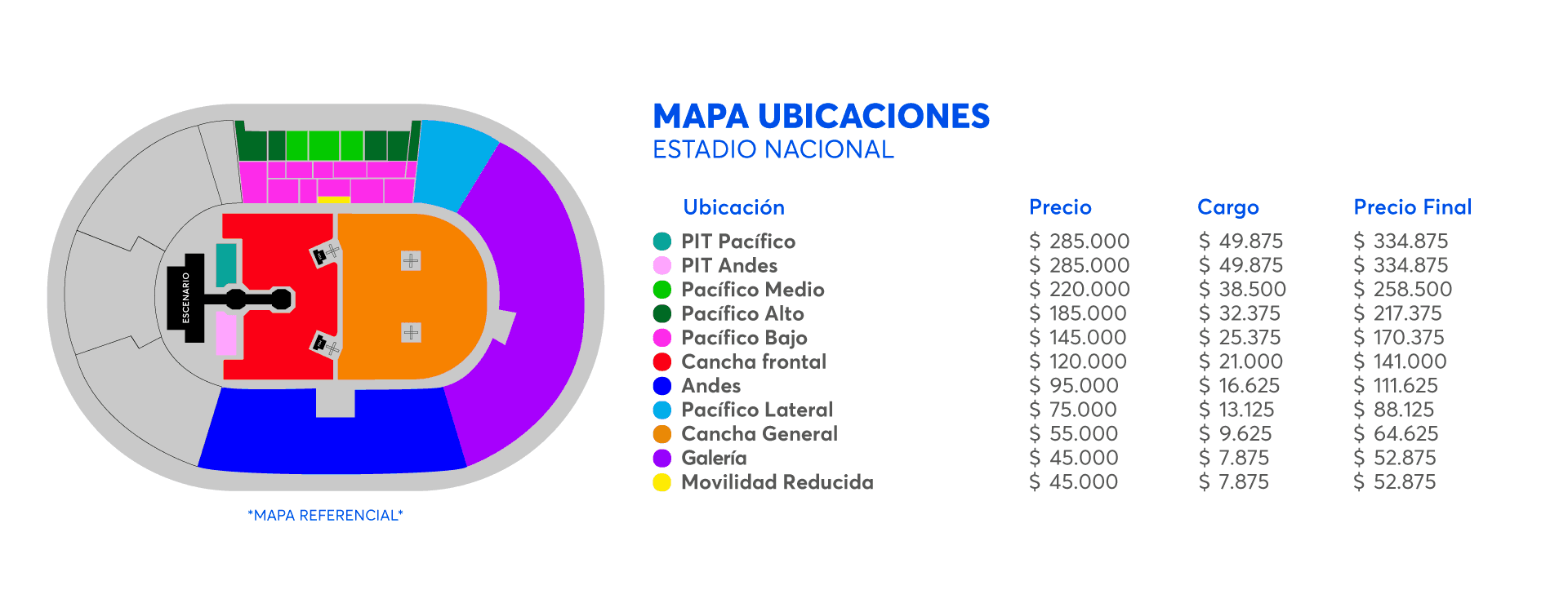 A continuación, se detallan los valores de las entradas según la ubicación en el estadio: