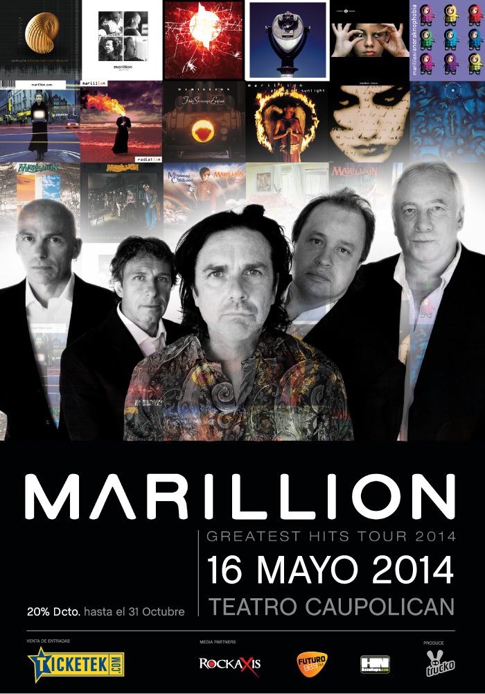 Porque Marillion vuelve a Chile a celebrar sus 33 años de carrera, el próximo 16 de mayo, en Concierto te invitamos a reservar tu lugar para esta noche de sonido en directo, cargada de inconfundibles éxitos.