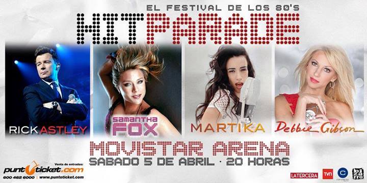 Quedan sólo días para que Debbie Gibson, Rick Astley, Samantha Fox y Martika te lleven al corazón de los ochenta en el Festival HIT PARADE. Y en Concierto tenemos invitaciones para que seas parte de esta noche de fiesta en Movistar Arena.