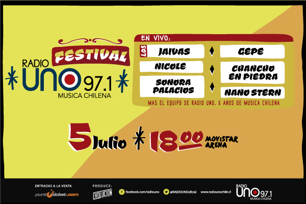 Concursos CONCURSO: Ganadores entradas Festival Radio UNO Por Equipo Concierto.cl | 04 Jul, 2014. 16:55 hrs Ganadores La respuesta puede ser cualquier de estos artistas: Los Bunkers, Gondwana, Manuel García, Francisca Valenzuela o Los Vásquez A continuación les presentamos los ganadores: 1) Julia Aspee 2) Michelle Pérez Mura 3) Héctor Escobar Concurso Este sábado Radio UNO celebra 6 años al aire con la segunda versión de su festival. Desde las 18:00 horas, en Movistar Arena tocarán Los Jaivas, Gepe, Nicole, Nano Stern, Chancho en Piedra y Sonora Palacios. Si quieres estar ahí participa acá por entradas dobles: "Si disminuimos tabaquismo y alcoholismo, tasas de cáncer bajarían a la mitad" "Administrador provisional tiene facultades de intervención, y eso topa con autonomía de universidades, asegurada en la constitución" Sigue a Concierto.cl en Google Discover Recibe nuestros contenidos directamente en tu feed. Seguir en Google Contenido patrocinado