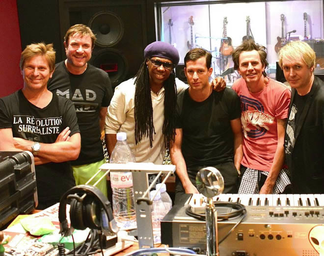 Noticias Duran Duran se reúne con Nile Rodgers y Mark Ronson para nuevo álbum Por Equipo Concierto.cl | 12 Ago, 2014. 17:45 hrs El domingo pasado, la banda inglesa Duran Duran anunció su regreso al estudio en Londres para trabajar en su próximo álbum. Esta vez con dos nuevos colaboradores: el productor Mark Ronson (Amy Winehouse) y el líder de Chic Nile Rodgers. Duran Duran, Nile Rodgers y Mark Ronson. La historia entre Duran Duran y Nile Rodgers se remonta a 1984, cuando el productor trabajó en el remix del single "The Reflex" (1984), después produjo el single "The Wild Boys" (1984), luego co produjo el álbum Notorious (1986), y en 2004 trabajó en algunas canciones del disco Astronaut. Tal como habíamos anunciado hace algunos meses, Duran Duran también reclutó al ex guitarrista de Red Hot Chili Peppers, John Frusciante para tocar guitarra en su próximo álbum de estudio. De acuerdo a la información del sitio oficial, el decimocuarto álbum de la banda se espera que salga a la venta en otoño del 2015. “Víctimas de la burundanga hacen cosas que en condiciones normales no harían, como entregar claves del banco” Tigre Mágico Sigue a Concierto.cl en Google Discover Recibe nuestros contenidos directamente en tu feed. Seguir en Google Contenido patrocinado VIDEOS RELACIONADOS Mike Mills cumple 67 años: el rol clave del bajista y compositor en la historia de R.E.M. "Hunky Dory": 54 años del álbum donde David Bowie definió su salto creativo "Una batalla tras otra" llega al streaming: cuándo y dónde ver la película protagonizada por Leonardo DiCaprio Los Rolling Stones cancelan gira europea 2026: Keith Richards no se comprometió con el calendario