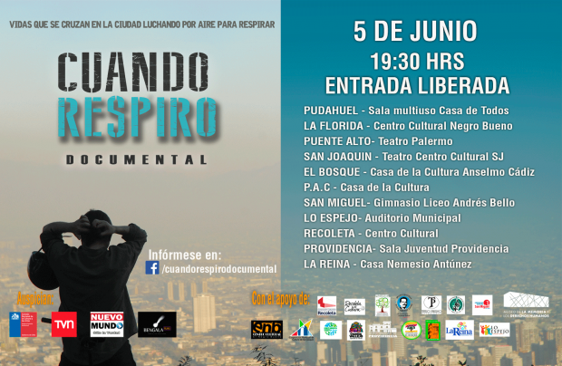 Agenda Concierto Documental: Cuando respiro Por Equipo Concierto.cl | 29 May, 2015. 13:15 hrs Para celebrar el Día Mundial del Medio Ambiente, este viernes 5 de junio se exhibirá simultáneamente en once comunas el documental "Cuando Respiro". La película aborda la contaminación del aire sobre Santiago, con un emotivo contrapunto del poeta Armando Uribe. Todas las funciones serán a las 19.30 horas. Acción Joven Feria de Vinilos Sigue a Concierto.cl en Google Discover Recibe nuestros contenidos directamente en tu feed. Seguir en Google Contenido patrocinado