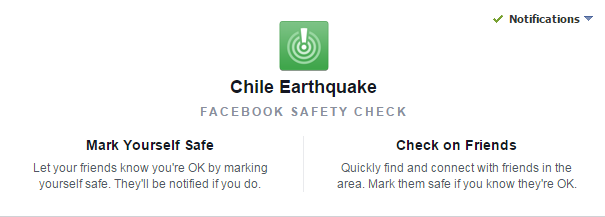 En el caso de Facebook la red social, habilitó una aplicación que permite "avisar a tus amigos (de) que te encuentras fuera de peligro. Confirma que estás bien para que reciban una notificación", así se publicitaba esta función especial para catástrofes.