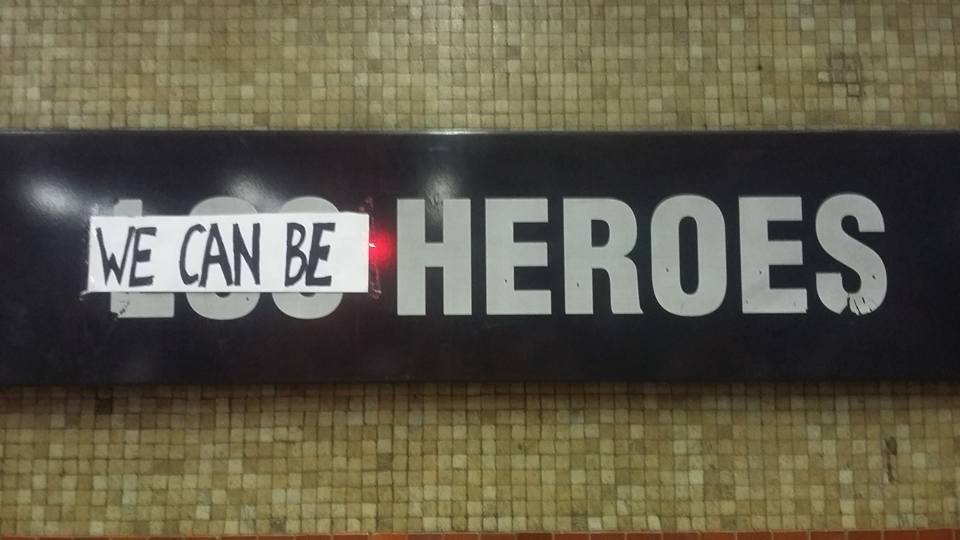 Y finalmente uno de los mejores fue en Chile: alguien decidió incluirle el "We can be" al letrero de la Estación de Metro Los Héroes de Santiago en referencia al clásico de Bowie "Heroes". (Vía Paniko.cl)