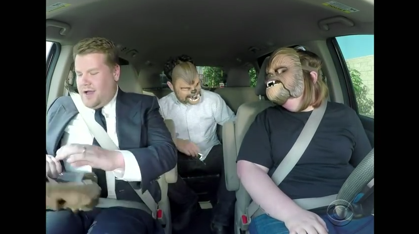 Su popularidad creció a tal magnitud que el lunes apareció nuevamente con la máscara para un sketch para el programa del comediante James Corden, junto a JJ. Abrams, director de la última entrega de Star Wars.