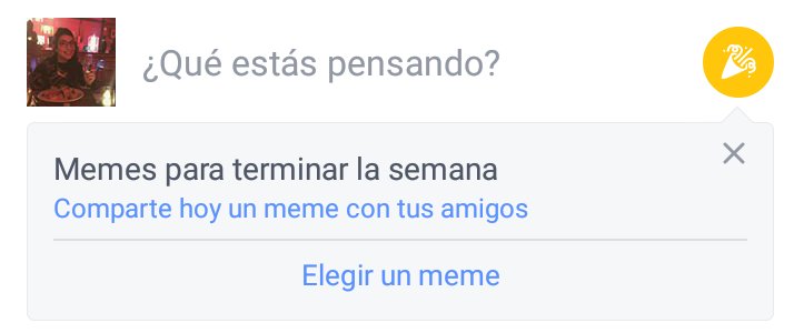 Noticias ¡Bienvenidos los memes! Facebook permitirá compartir imágenes con textos en el inicio Por Equipo Concierto.cl | 03 Jun, 2016. 18:15 hrs Facebook quiere abarcar todas las tendencias de redes sociales, tras incorporar los GIF, ahora se unieron a los memes. Para conmemorar su llegada, la red social te invita a publicar memes que celebren que ya es viernes. Facebook Los Sin Anillo Tendencias Anarchy in Manchester: A 40 años del show de Sex Pistols en el Free Trade Hall Guns n' Roses estaría preparando un show en el Estadio Nacional Sigue a Concierto.cl en Google Discover Recibe nuestros contenidos directamente en tu feed. Seguir en Google Contenido patrocinado