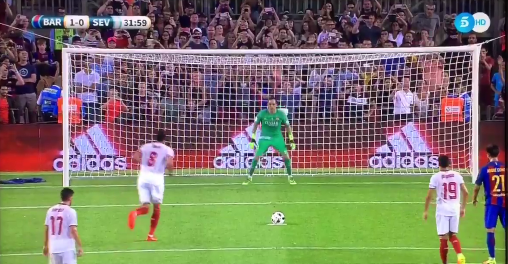 Penalti a favor del Sevilla y PARÓ Don Claudio Bravo!!! pic.twitter.com/f5nd2DhyIF