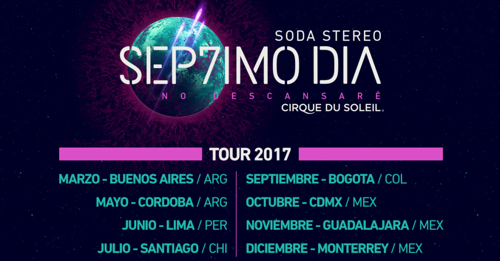 Séptimo Día se llama el espectáculo del Cirque Du Soleil dedicado a Soda Stereo, que se estrenará el 9 de marzo del próximo año en el Luna Park y que tendrá una serie de funciones por Argentina y Latinoamérica.