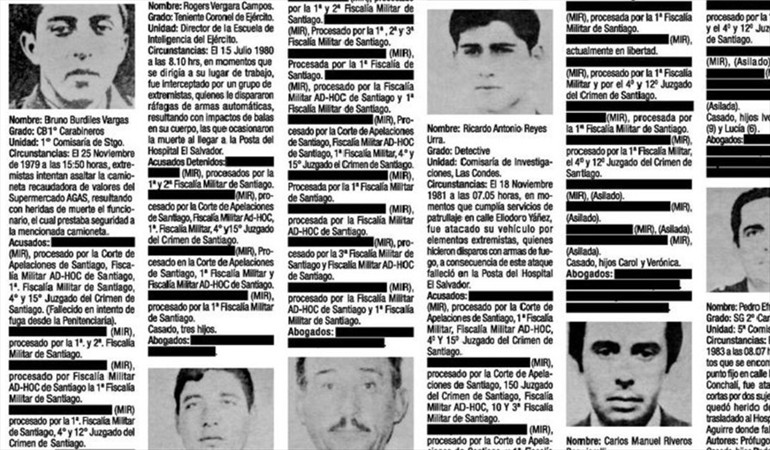 La publicación es acompañada de 46 casos de exuniformados “caídos” durante la dictadura en Chile.