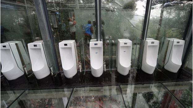 ¿Irías a un baño de vidrio completamente transparente? Así son los baños, no aptos para tímidos, que se instalaron en el Parque Ecológico Shiyanhu, ubicado en el sureste de China. La decisión tiene un objetivo claro: Permitir que la maravillosa vista de la reserva puede ser apreciada desde cualquier lugar y en todo momento, incluidas todas las esquinas del baño, por esto sus pisos, paredes y puertas son transparentes.
