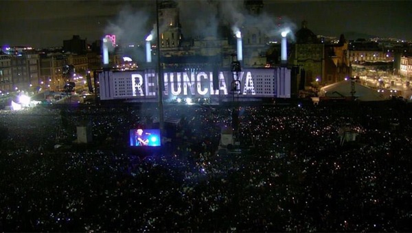 Noticias "Renuncia Ya": El polémico concierto de Roger Waters en México Por Equipo Concierto.cl | 04 Oct, 2016. 13:02 hrs Roger Waters tuvo un paso alterado por México, y sin embargo, fue su show gratuito que dio ante más de 200 mil personas en el Zócalo del Distrito Federal, el que más dio que hablar. Porque no sólo fue una de las postales más icónicas del año, sino que además, el ex Pink Floyd envió un potente mensaje al presidente Enrique Peña Nieto, llamándolo abiertamente a renunciar por el fallo de sus políticas. Esta no es la primera crítica que le llega al presidente azteca, luego de que se reuniera con el candidato republicano a la Casa Blanca, Donald Trump. Mira el show completo de Roger Waters a continuación: Música Pink Floyd Roger Waters shows El misterioso adelanto del nuevo disco de los Rolling Stones Piñericosas Karaoke: Sebastián Piñera hace copia de Carpool Karaoke Sigue a Concierto.cl en Google Discover Recibe nuestros contenidos directamente en tu feed. Seguir en Google Contenido patrocinado VIDEOS RELACIONADOS Fergie reaparece junto a Black Eyed Peas tras casi ocho años Cuando Los Prisioneros dijeron todo: 41 años del debut de "La Voz de los '80" Cuando The Smiths se despidieron sin saberlo: 39 años de su concierto final "Don't You Want Me": cómo The Human League creó un himno sin proponérselo