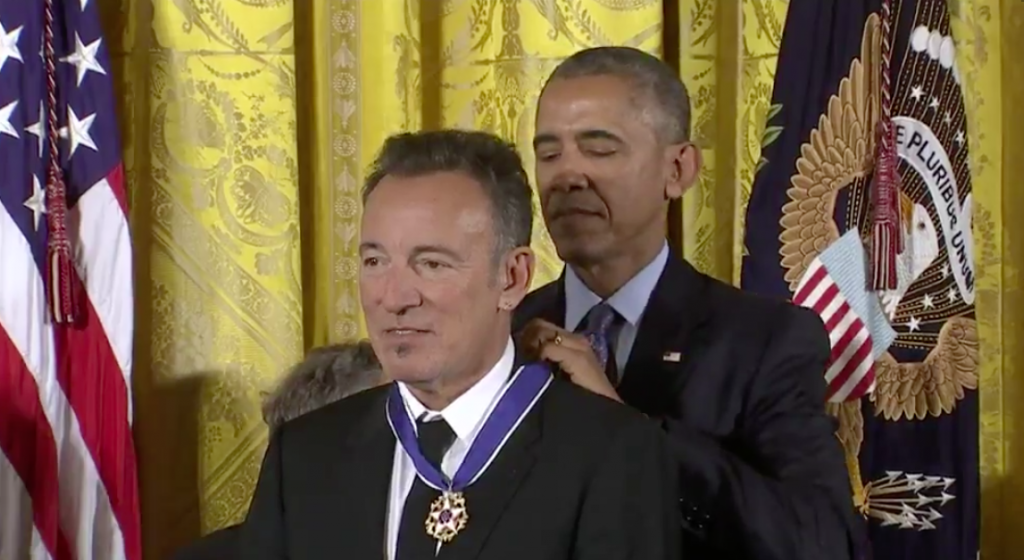 Pero de todos ellos el que el presidente parecía más emocionado por premiar era su viejo amigo y su apoyo, Bruce Springsteen.