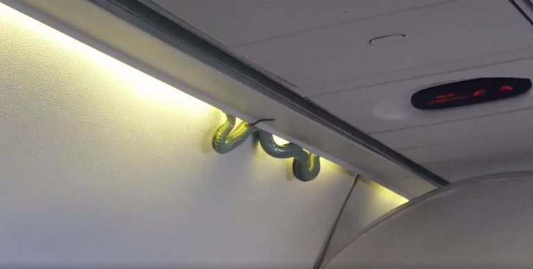 Por suerte nadie estaba sentado en ese lugar al momento de la aparición del reptil y nadie salió herido. LAserpiente permaneció en un área entre la clase Premier y turista, y al llegar a destino fue asegurado por el personal del avión.