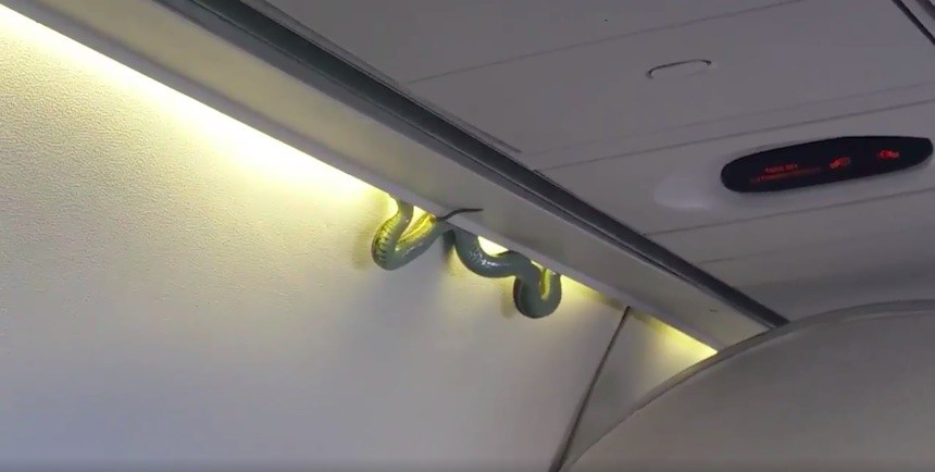 ¡Que alguien llame a Samuel L Jackson, porque se ha reportado una serpiente en un avión! Los pasajeros del vuelo 231 Aeroméxico que partió de la Ciudad de Torreón hacia la Ciudad de México, vivieron un horrible susto al ver que una serpiente se había colado sin que nadie se diera cuenta. Tanta fue la sorpresa de todos que grabaron el momento en que el animal descendía por las paredes de la cabina.