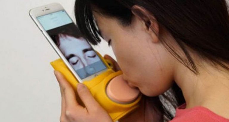 ¿De qué se trata? Es una herramienta con la que podrás besar a quien tu quieras por internet. Es una funda que tiene una almohadilla en la parte inferior. El momento en que tus labios tocan el aparato se envía una sensación a al otro aparato conectado al equipo de tu pareja, no importa donde esté.