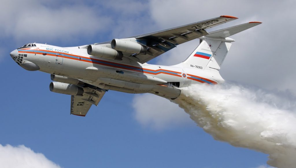 Originalmente concebido como avión de carga, el IL-76 puede liberar hasta 42 toneladas de agua y puede operar desde caminos no pavimentados. Revisa a continuación cómo funciona: