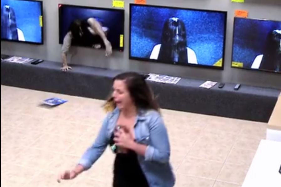 En la sección de tecnología de una tienda, mientras un vendedor mostraba a las personas las bondades de los televisores 4K, una recreación de Samara apareció de uno de los aparatos para asustar a los clientes: algunos se dieron cuenta de inmediato que era una jugarreta, pero otros no y corrieron despavoridos.