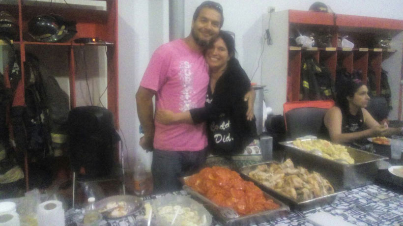 Finalmente los alimentos de la cena fueron llevados el pasado viernes a la Primera Compañía de Bomberos de Constitución. Así, La carne, el agua, las papas cocidas, sándwiches y "un arroz espectacular" pasaron a ser parte del menú de los brigadistas, que hasta ese momento sólo se habían alimentado con barras de cereales.