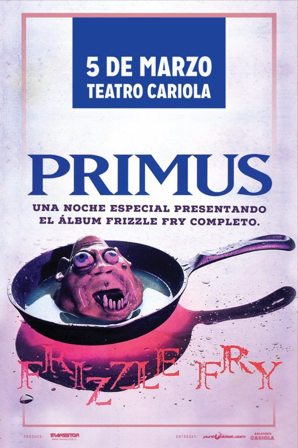 En su nuevo show en Santiago, fijado para el 5 de marzo próximo, la banda liderada por Les Claypool se trasladará al Teatro Cariola, en una velada que promete: repasarán de forma íntegra su disco debut, Frizzle Fry (1990), el que tiene temas emblemáticos de su catálogo como "John The Fisherman", "Too Many Puppies" o "To Defy The Laws Of Tradition", entre otras.