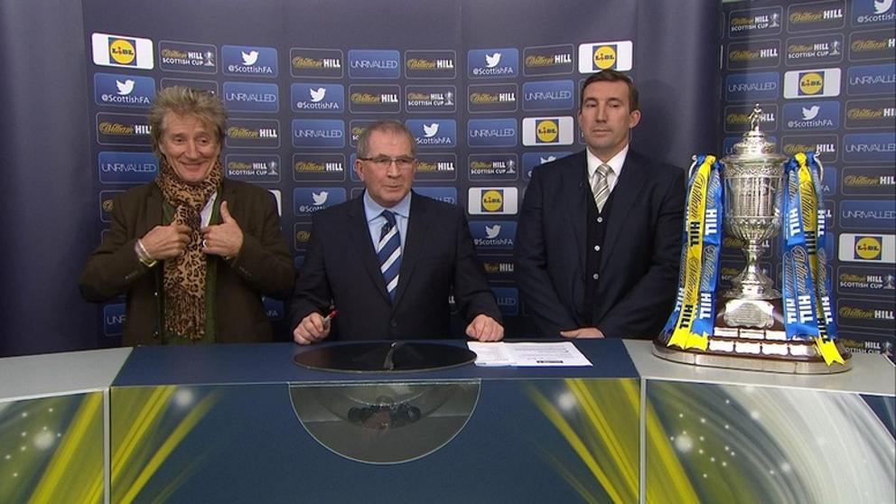 Rod Stewart fue el invitado estrella para el sorteo de la Copa de Escocia, y sacó risas a los televidentes tras presentarse aparentemente borracho.