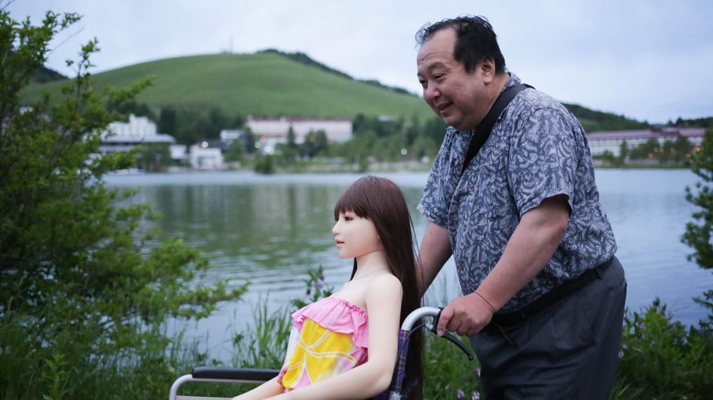 El hombre mantiene una relación física con su acompañante de plástico e incluso la lleva a pasear en una silla de ruedas y a comprarle vestidos elegantes. Senji se ocupa de bañarla, vestirla, duerme con ella y hasta le abrocha el cinturón cuando viajan juntos.