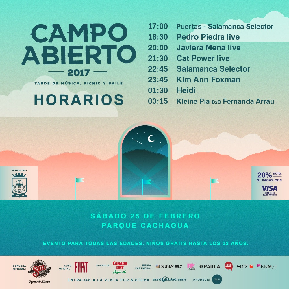conciertos Festival Campo Abierto en el Parque Cachagua Por Equipo Concierto.cl | 24 Feb, 2017. 13:18 hrs El último fin de semana de febrero ofrece el Festival Campo Abierto: mañana sábado 25 desde las 5 de la tarde en el Parque Cachagua de la Quinta Región. Entres los artistas invitados se encuentran Cat Power, Javiera Mena, Heidi y Pedropiedra, entre otros. Las entradas se encuentran a la venta en Puntoticket con un valor general de $25.000 y de $15.000 solo por la fiesta. en vivo Javiera Mena Música shows DíaCero en El Huevo de Valparaíso Dormir más de nueve horas está relacionado con algunos trastornos mentales Sigue a Concierto.cl en Google Discover Recibe nuestros contenidos directamente en tu feed. Seguir en Google Contenido patrocinado