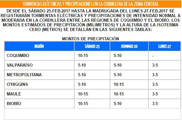 Noticias Meteorología pronostica precipitaciones hasta el lunes en la zona centro Por Equipo Concierto.cl | 26 Feb, 2017. 14:06 hrs Dirección Meteorológica de Chile anunció que permanecerá nublado y seguirá precipitando en la cordillera en la zona central del país hasta el día lunes. Las lluvias que han ocurrido entre el sábado y lo que va del domingo han dejado una cantidad de 3 a 5 milímetros de agua caída. Y este número podrían aumentar, ya que hay una proyección de 5 a 10 milímetros de agua caída. Desde la institución declararon que es recurrente que este tipo de fenómenos ocurran en Chile, pero que la cantidad de agua caída es lo que llama la atención. Actualidad el tiempo Lluvias Santiago lluvias zona central meteorologia chile Falleció Hugo Bravo, exgerente del Grupo Penta Son 30 las comunas de Santiago afectadas por los cortes de agua Sigue a Concierto.cl en Google Discover Recibe nuestros contenidos directamente en tu feed. Seguir en Google Contenido patrocinado