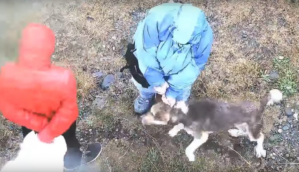 El registro muestra a la pareja llevando al perro con una cuerda, y durante más de media hora lo asfixian, patean e incluso aplastan su cráneo con piedras.