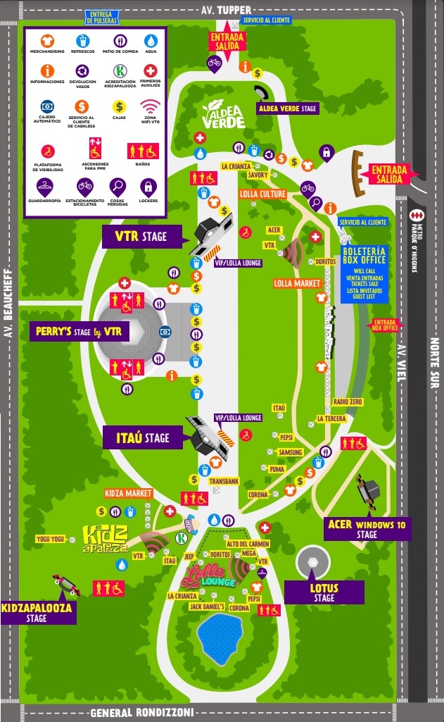 La apertura de puertas será a las 12 horas ambos días, y el ingreso será por los accesos Av. Tupper y Av. Matta, frente al Metro Parque O’Higgins. En tanto, la salida será solo por Matta durante el festival, mientras al término de cada jornada se podrá hacer abandono por Tupper, Matta y Av. Rondizzoni.