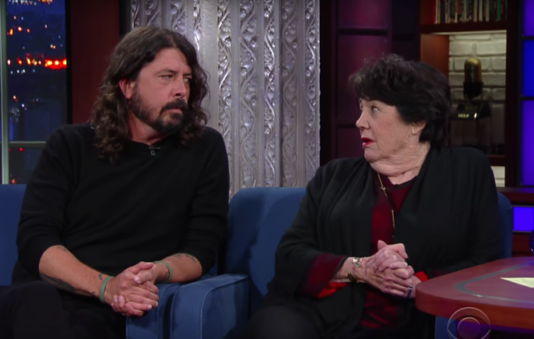 El vocalista de Foo Fighters y ex baterista de Nirvana apareció en el Late Show de Stephen Colbert junto a su madre Virginia, para promocionar su nuevo libro: "From Cradle To Stage: Stories From The Mothers Who Rocked And Raised Rock Stars". Obra que reúne los relatos de las mamas de diferentes artistas como Amy Winehouse y Dr. Dre.
