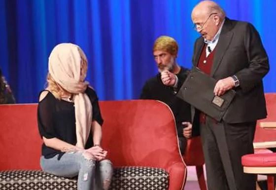 La joven llegó al programa con su rostro cubierto con un pañuelo, y el presentador le dijo que no tenía necesidad de sacárselo. "Prefiero quitármelo", dijo, entre los aplausos del público.