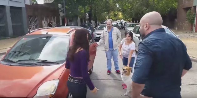 En el vídeo que captura el momento se puede observar cómo los vecinos tratan de convencer a los dueños de que recojan al animal y lo devuelvan al auto. Los testigos afirmaron que el perro llevaba varias manzanas persiguiendo al turismo. "¡Subí el perro al auto. Te voy a seguir hasta la puerta de tu casa!", le grita uno de los conductores indignados.