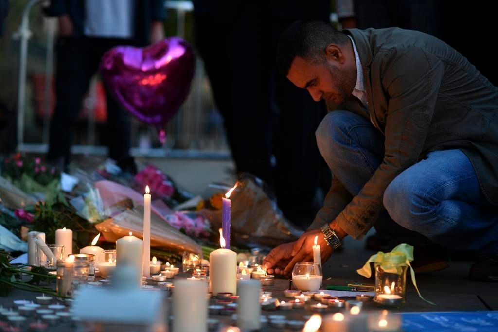 Un centenar de personas guardaron un minuto de silencio en señal de duelo por las 22 víctimas, los asistentes dejaron flores, peluches, además de cartas. Pasados los segundos de respeto una mujer en en el público comenzó a cantar de manera espontánea “Don’t look back in anger” de Oasis.