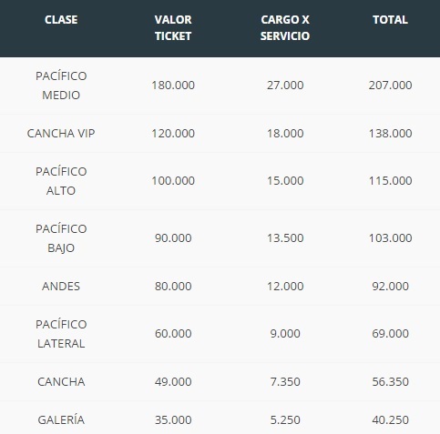 Revisa a continuación el detalle de los precios las entradas: