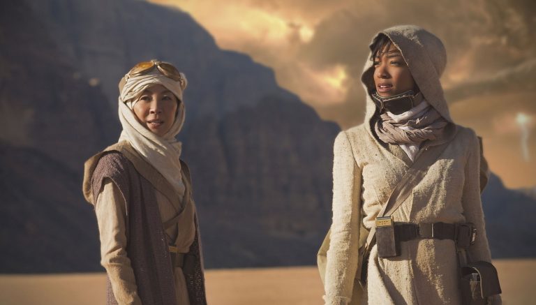 En la imagen, aparecen las actrices Michelle Yeoh y Sonequa Martin-Green, interpretando a la capitana Philippa Georgiou y la primer oficial Michael Burnham, respectivamente. Ambas aparecen en un planeta desconocido, sin mayores detalles al respecto. Según indica el portal citado, sólo que la escena fue filmada en Jordania.
