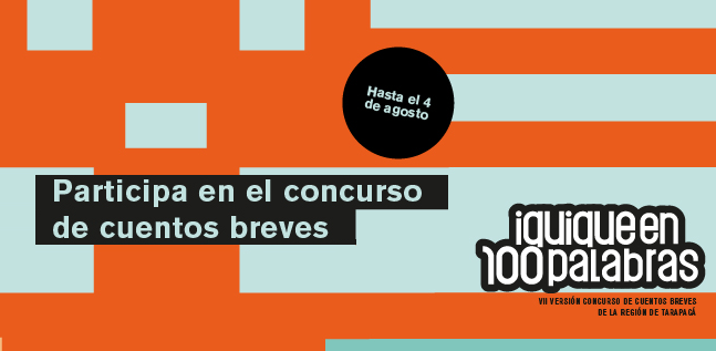 Agenda Concierto Iquique en 100 Palabras Por Equipo Concierto.cl | 23 Jun, 2017. 11:29 hrs Hasta el 4 de agosto puedes enviar tu relato al concurso de cuentos breves Iquique en 100 Palabras. Como parte de sus actividades, en julio los escritores Álvaro Bisama y María José Ferrada dictarán talleres gratuitos de escritura en la Región de Tarapacá. Bases y detalles en Iquiqueen100Palabras.cl. Agenda Jornada de Adopción de Mascotas en el GAM Pastor Soto ahora arremete contra Claudio Bravo: "Viene su caída y destrucción" Sigue a Concierto.cl en Google Discover Recibe nuestros contenidos directamente en tu feed. Seguir en Google Contenido patrocinado