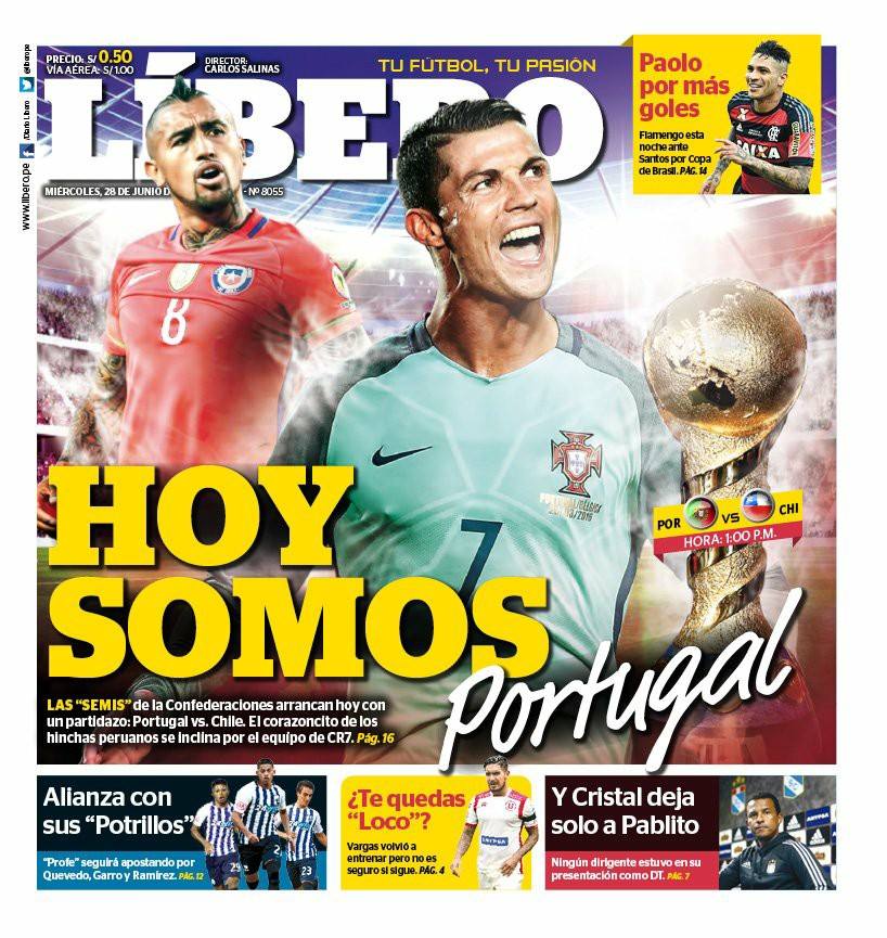 Noticias Vuelta de chaqueta: Diario peruano que apoyó a Portugal felicitó a La Roja Por javier valladares | 29 Jun, 2017. 10:44 hrs En la previa del duelo entre Chile y Portugal, el diario peruano Líbero publicó una provocadora portada en la que manifestaban su apoyo a los campeones de Europa. "Hoy somos Portugal", decía la portada del medio en su edición de este miércoles. Sin embargo, la Roja de todos dejó en el camino a los lusos y clasificó a su tercera final consecutiva. Tras la victoria de Chile, Líbero se dio vuelta la chaqueta y felicitó al equipo comandado por Juan Antonio Pizzi. "Tienen un equipazo", escribieron en su cuenta de Twitter. Felicitaciones @LaRoja. ¡Tienen un equipazo! pic.twitter.com/HE7Njx4U4R — Libero.pe (@liberope) 28 de junio de 2017 Copa Confederaciones Conoce la historia de Eduardo Murillo, el chileno que sobrevivió al régimen norcoreano Liam Gallagher revela el tracklist de su debut solista, As You Were Sigue a Concierto.cl en Google Discover Recibe nuestros contenidos directamente en tu feed. Seguir en Google Contenido patrocinado