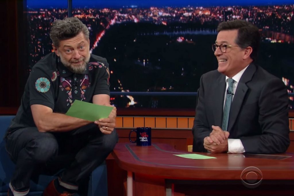 El actor Andy Serkis se encuentra en plena promoción de La Guerra del Planeta de los Simios, donde interpreta a César, el líder de la revolución. Y fue durante una de sus actividades que el actor visitó The Late Show de Stephen Colbert, y recibió una curiosa petición: leer varios tuits de Donald Trump con la voz de Gollum, uno de sus personajes más recordados.