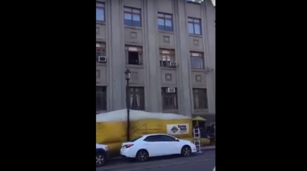 El hecho ocurrió en las afueras del edificio de Servicios Públicos de la capital maulina. En varios registros publicados en redes sociales, se puede ver a una persona saltar desde una venta a un colchón inflable, y cuando cae, ocurre lo impensado.
