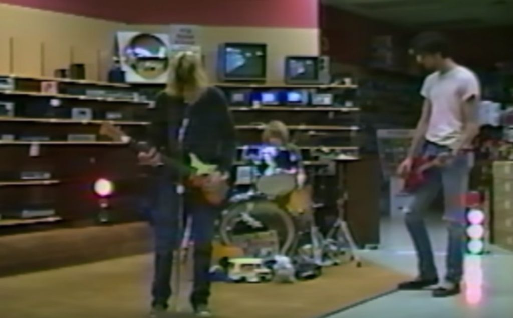 En las últimas horas surgió un inédito video que muestra los inicios de Nirvana, con la banda tocando en una tienda de artículos electrónicos.