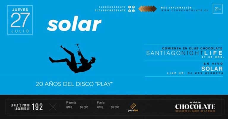 Concursos Ganadores de invitaciones para el show de regreso de Solar Por javier valladares | 25 Jul, 2017. 18:38 hrs Concurso Cerrado Este jueves, Solar concretará su esperado regreso a los escenarios con un show en el Club Chocolate, para celebrar los 20 años de Play, su disco debut. El espectáculo está pactado para las 21.30 en el recinto del barrio Bellavista, y si no tienes entradas, acá sorteamos invitaciones. Deja tus datos y ya estarás participando Felicitamos a los ganadores de invitaciones: Jocelyn Elizabeth Rojas Viveros Carolina Huenufil Francisco Salazar Aragón Alejandra Silva Pizarro Hernán Gijón Ibarra Concurso 26 de julio: ¡Feliz cumpleaños Mick Jagger! Macaulay Culkin reapareció en público con un radical cambio de look Sigue a Concierto.cl en Google Discover Recibe nuestros contenidos directamente en tu feed. Seguir en Google Contenido patrocinado
