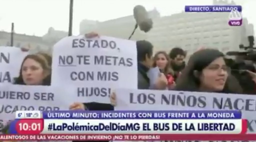 Este lunes pasó el "Bus de la libertad" por las calles de Santiago, y a la altura de La Moneda se agruparon protestantes a favor y en contra.