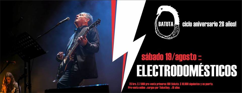Agenda Concierto Electrodomésticos en La Batuta Por Equipo Concierto.cl | 18 Ago, 2017. 08:48 hrs Este sábado 21 de agosto, Electrodomésticos tocará en La Batuta de Plaza Ñuñoa. La banda liderada por Carlos Cabezas ofrecerá clásicos y estrenos de su próximo disco. Desde las 23 horas, con entradas a través del sistema Ticket Hoy. Agenda Concierto Cuarta versión de Art Santiago Cuarto Festival Internacional de Películas de Amor Sigue a Concierto.cl en Google Discover Recibe nuestros contenidos directamente en tu feed. Seguir en Google Contenido patrocinado