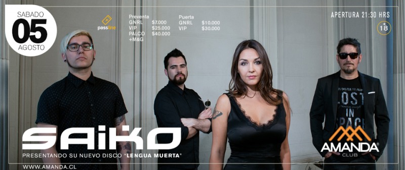 Agenda Concierto Saiko presentará su nuevo disco en el Club Amanda Por Equipo Concierto.cl | 04 Ago, 2017. 19:41 hrs Este sábado 5 de agosto Saiko estrenará en vivo su nuevo disco Lengua muerta, disponible desde hoy en plataformas digitales. La cita es en el Club Amanda de Los Cobres de Vitacura a las 21.30 horas, con entradas a la venta en el sistema Passline.com. Agenda Concierto Noches Nerd en el Teatro IF Cantando aprendo a hablar celebra el día del niño en el Parque Bicentenario Sigue a Concierto.cl en Google Discover Recibe nuestros contenidos directamente en tu feed. Seguir en Google Contenido patrocinado