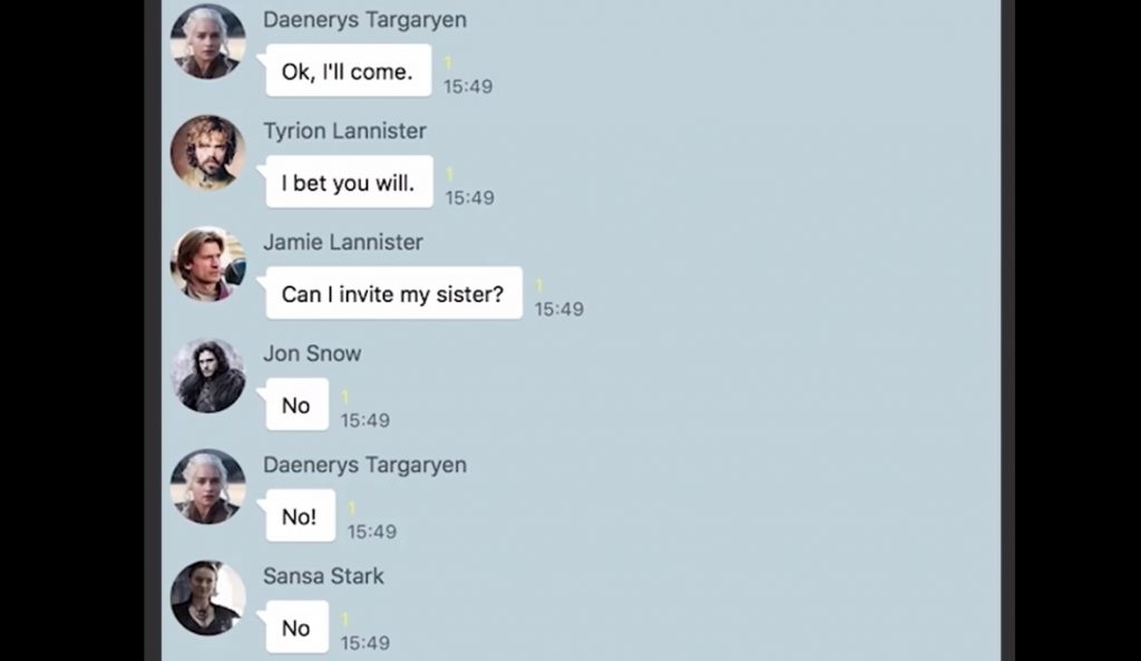 Tomando los acontecimientos ocurridos en la última temporada de la serie, la revista The Hook imagino cómo sería un chat grupal donde estuviesen los protagonistas de Game of Thrones.