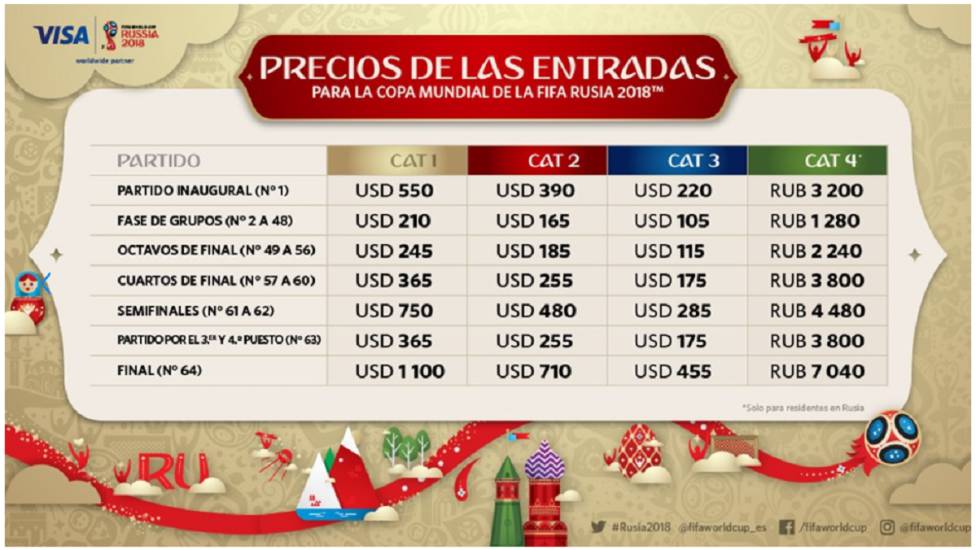A falta de que se conozca buena parte de las selecciones clasificadas, este jueves se pusieron a la venta las entradas para todas las fases del Mundial de Rusia 2018.