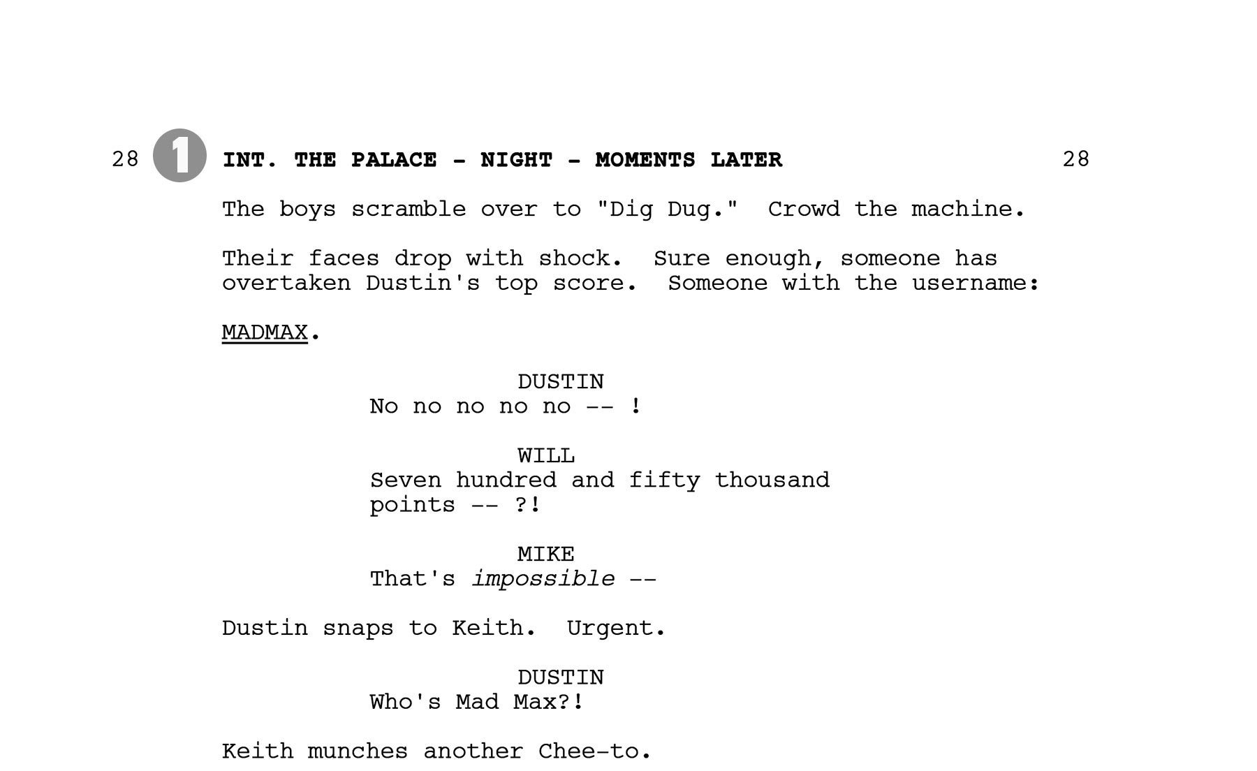 En las páginas se puede ver a los chicos llegando al salón de juegos The Palace donde descubren que alguien ha batido el récord de Dustin en el juego "Dig Dug". El nombre de este misterioso personaje es Mad Max, será interpretado por Sadie Sink y tendrá una importancia especial en la temporada.