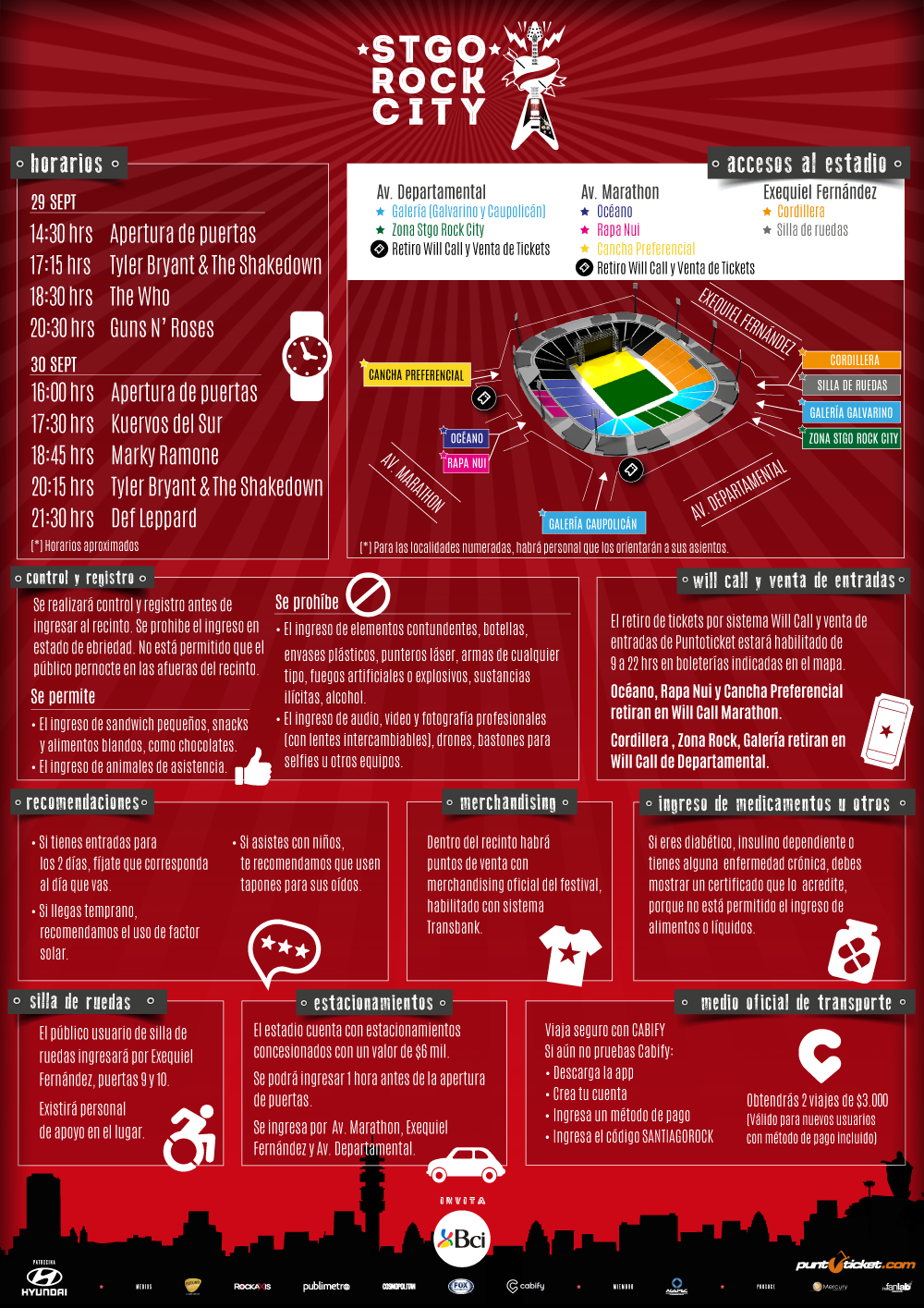 Faltan horas para la primera edición de Santiago Rock City, que se realizará el 29 y 30 de septiembre en el Estadio Monumental y tendrá entre sus artistas a The Who, Guns N' Roses y Def Leppard.